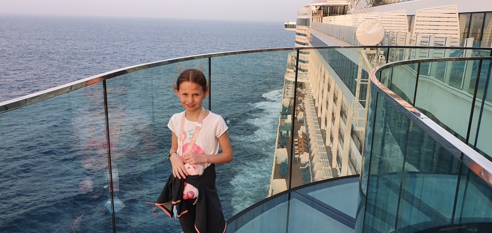 Wir hatten für Claudia und Lisa das Paket Haareflechten für Eltern und Kind gebucht, und es hat beiden sehr gefallen. Der Kurs fand im Friseursalon auf Deck 6 statt, direkt neben dem Spa. Das war schon der Wahnsinn was es alles auf dem Schiff gab. Da die Veranstaltung am späten Nachmittag war konnte Lisa dann mit einer tollen Frisur zum Essen gehen.